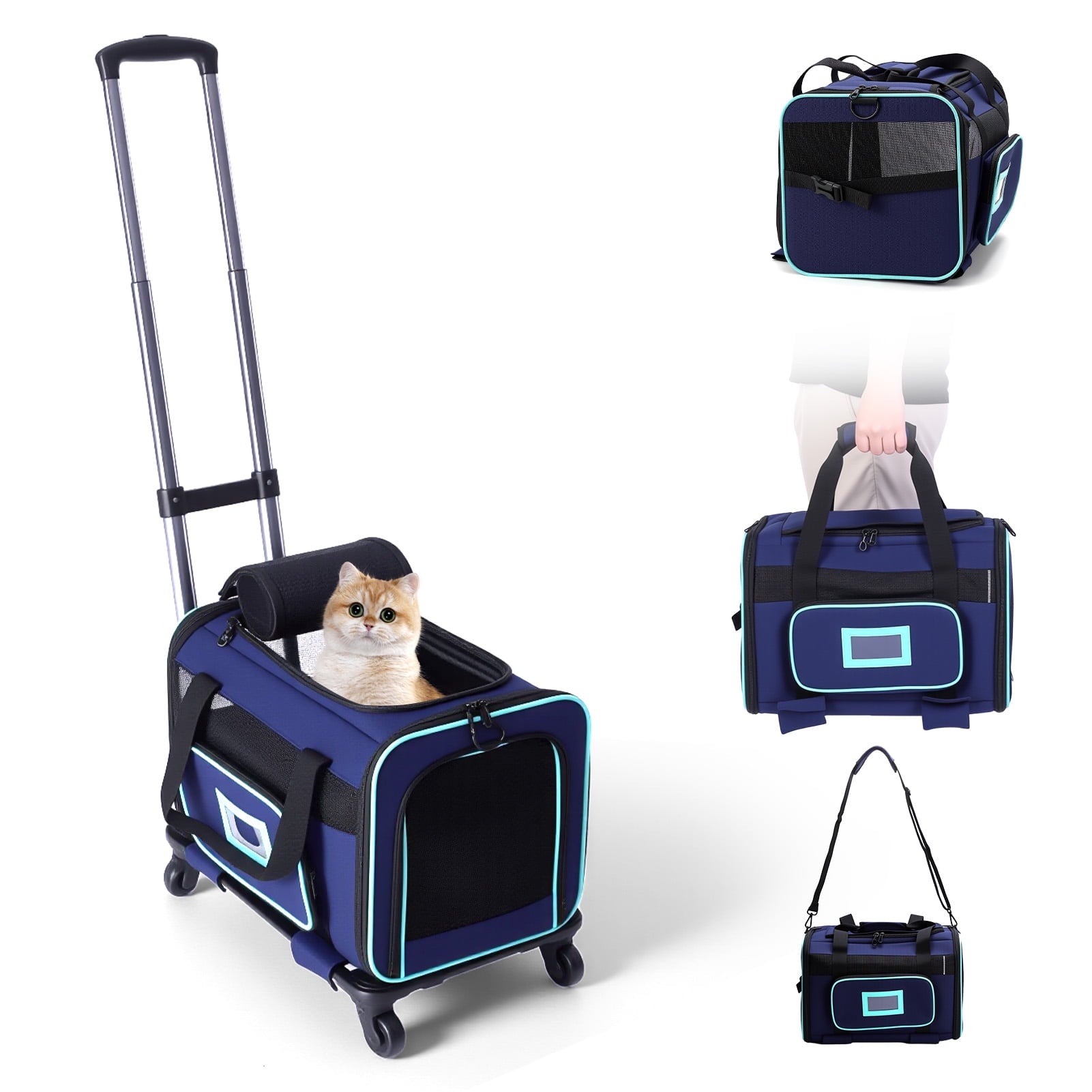 Cat Carrier with Wheels Soft Carrier for Puppy Cats Under 44lbs, Rolling Cat Carrier for Travel, Camping, Outdoor