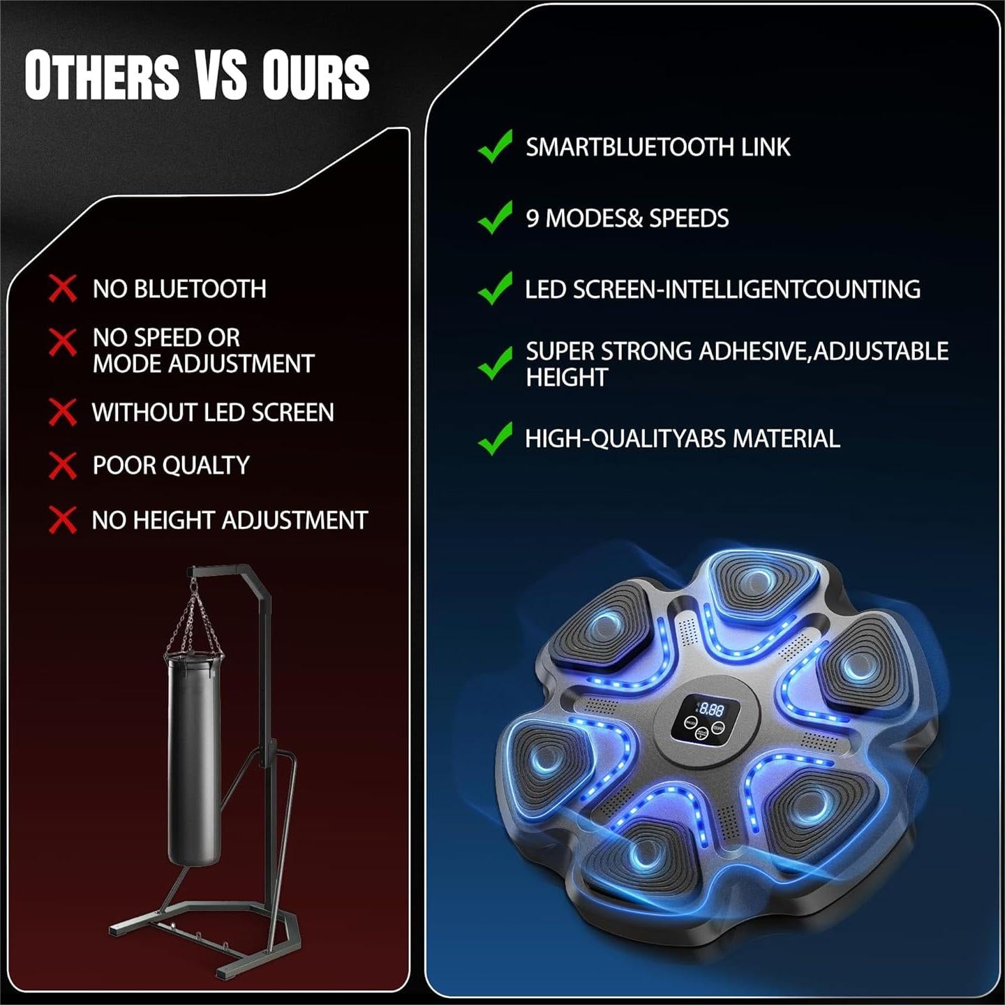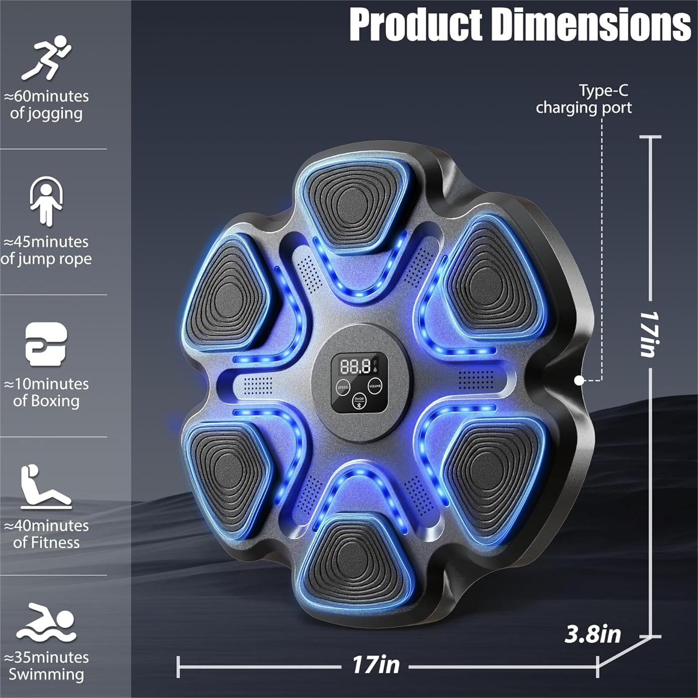 PROFESSIONAL MUSIC BOXING FITNESS PARTNER: This music boxing machine provides an engaging and intense full-body workout experience. It also supports Bluetooth pairing, you can box to the beat of your favorite music, follow the rhythm when practicing boxing, improve flexibility, coordination and reaction time. Relieve stress and make your workout full of energy and vitality.